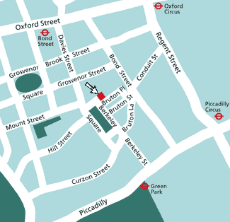Our London base that is used for meetings (photos/map above and below) is conveniently located in the West End in Berkeley Square. Nearest London Underground stations are Bond Street and Green Park (see map further below).